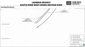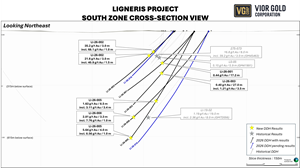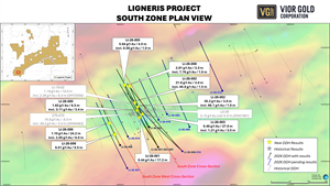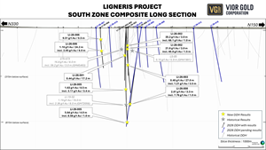 Mathieu Savard, President and Chief Executive Officer of Vior Gold Corporation, commented “These initial results confirm the high-grade nature of the gold mineralization at South Zone and validate the historical intercepts drilled almost 40 years ago on the Ligneris Project. We are thrilled with today’s results that extend the mineralized trend at South Zone by more than 200 meters laterally and by 260 meters vertically. We’re almost halfway through the winter program with approximately 9,400 meters drilled so far and we are expecting additional results in the upcoming weeks. We believe that the large halos of low-grade gold intersected in drilling so far could be indicative of the presence of larger gold system. We have three rigs turning as we are following up on the deepest intersection to date at Ligneris and pursuing the program that aim to extend the known mineralization both laterally and at vertically.”