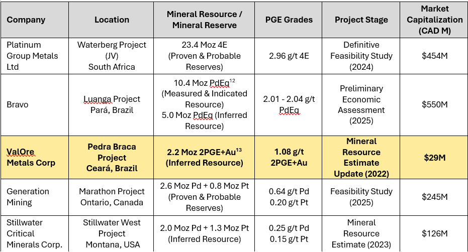 · ValOre Metal’s Pedra Branca PGE Project, located in Brazil, offers a compelling investment case with a World-class, near surface deposit, a supportive local community and good access to infrastructure, and being developed by a highly experienced management team.