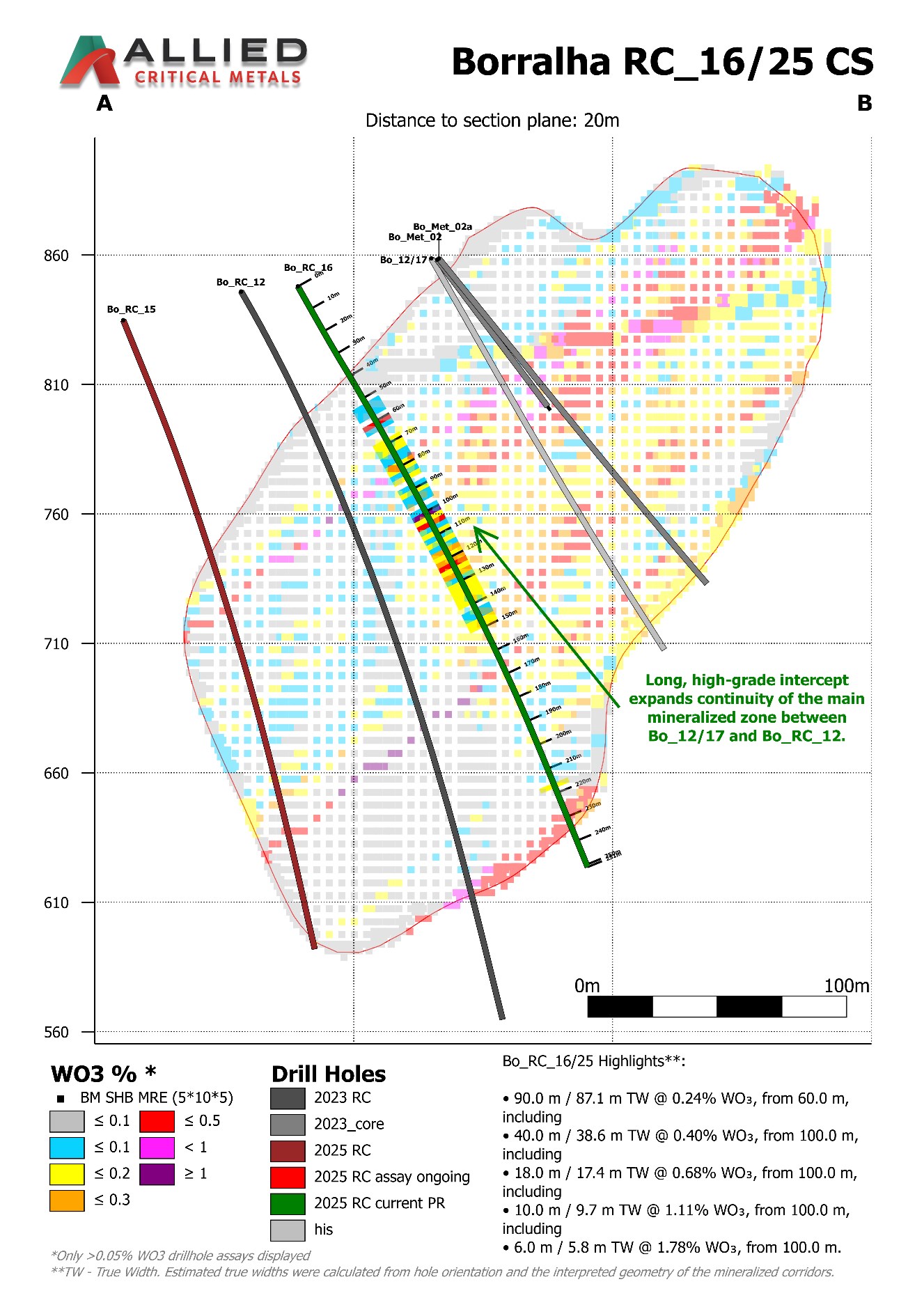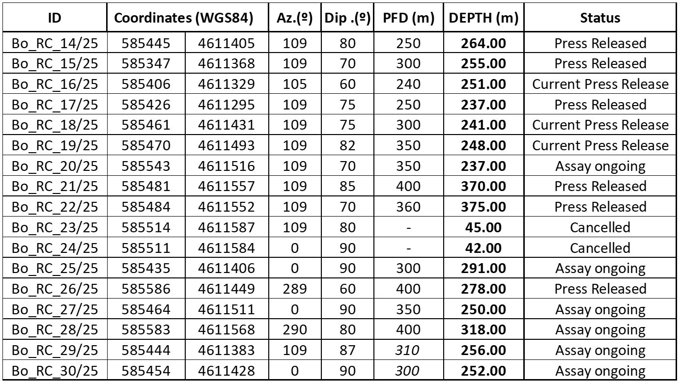 Roy Bonnell, CEO and Director of Allied, commented: "Borralha continues to surprise us on the upside, Bo_RC_16 has delivered one of the strongest intercepts ever drilled on the project, expanding the high-grade central-south mineralization. Meanwhile, Bo_RC_18 and Bo_RC_19 has successfully demonstrated mineralization continuity in what was considered a weaker zone. Together, these results confirm both scale and grade potential as we advance towards our updated MRE and PEA."