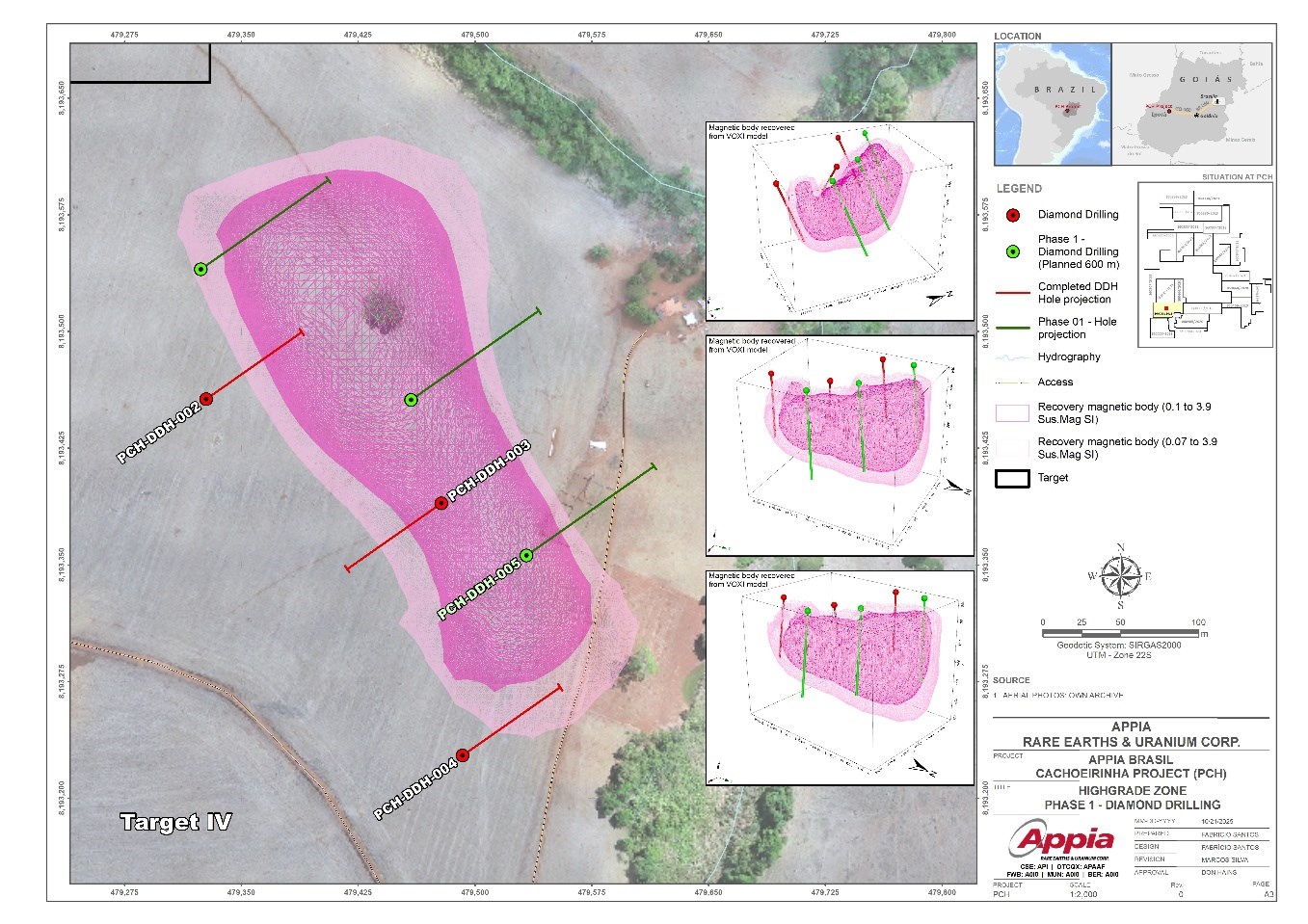 Tom Drivas, CEO, stated, "We have been eager to get a drill back to the Highgrade mineralized area discovered in the Southwest part of Target IV Zone since the discovery was first made at the beginning of 2024. This extraordinary mineralization included 92,758 ppm or 9.28% TREO across 2 meters (See January 16, 2024, news release) and the follow up November 2024 three diamond drill holes with all 3 DD holes intersecting high grade TREO over the entire 3 holes from surface to 150m depts (see January 22,2025 new release). Appia is continuing the drilling program in the Ionic Clay zone with two auger drills; assay results for which will be released once received and analyzed by the Company."
