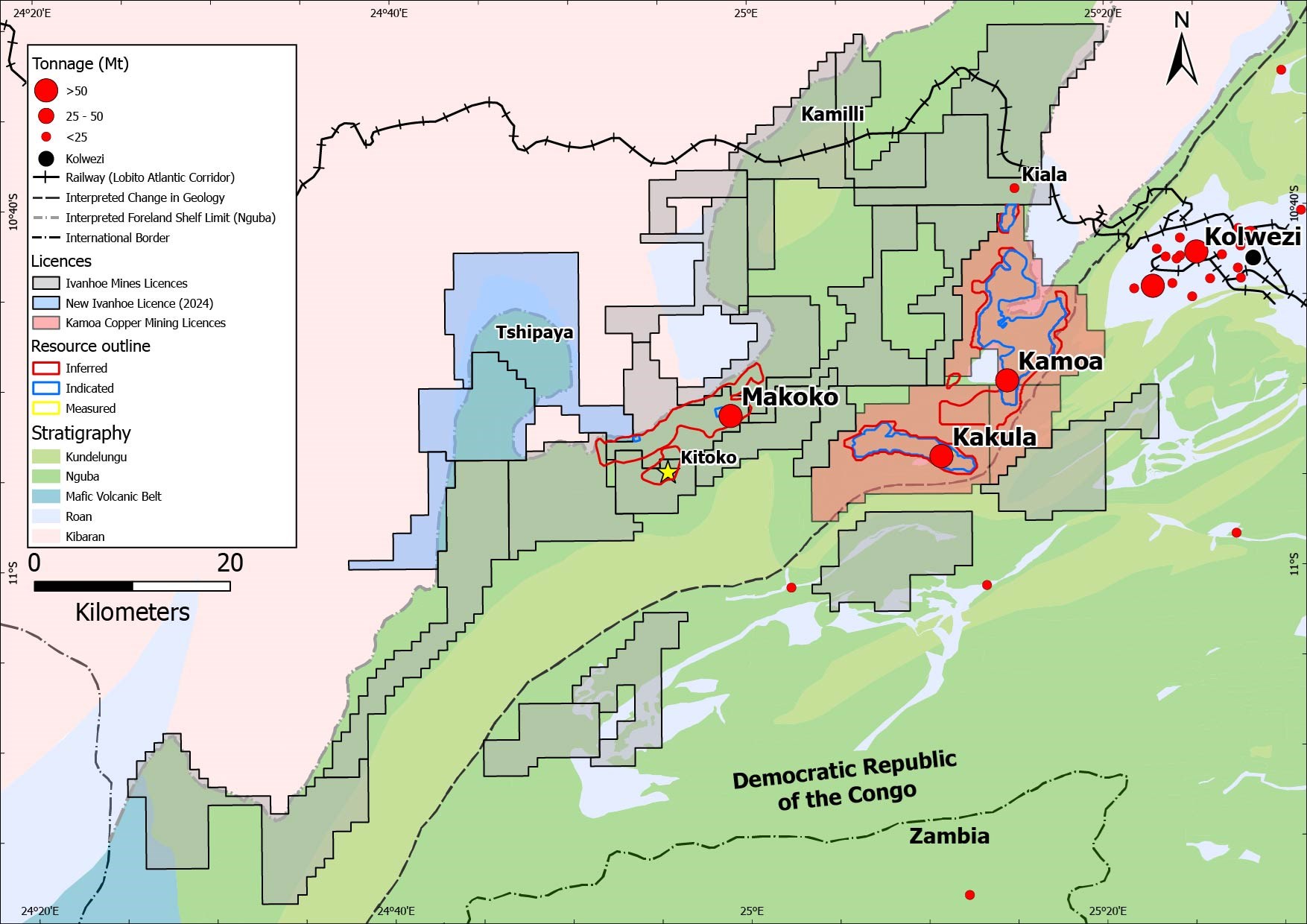 The Kamoa-Kakula Copper Complex is operated as the Kamoa Holding joint venture between Ivanhoe Mines and Zijin Mining. The complex covers a licence area of 400 square kilometres and is approximately 25 kilometres southwest of the town of Kolwezi on the far western edge of the Central African Copperbelt.