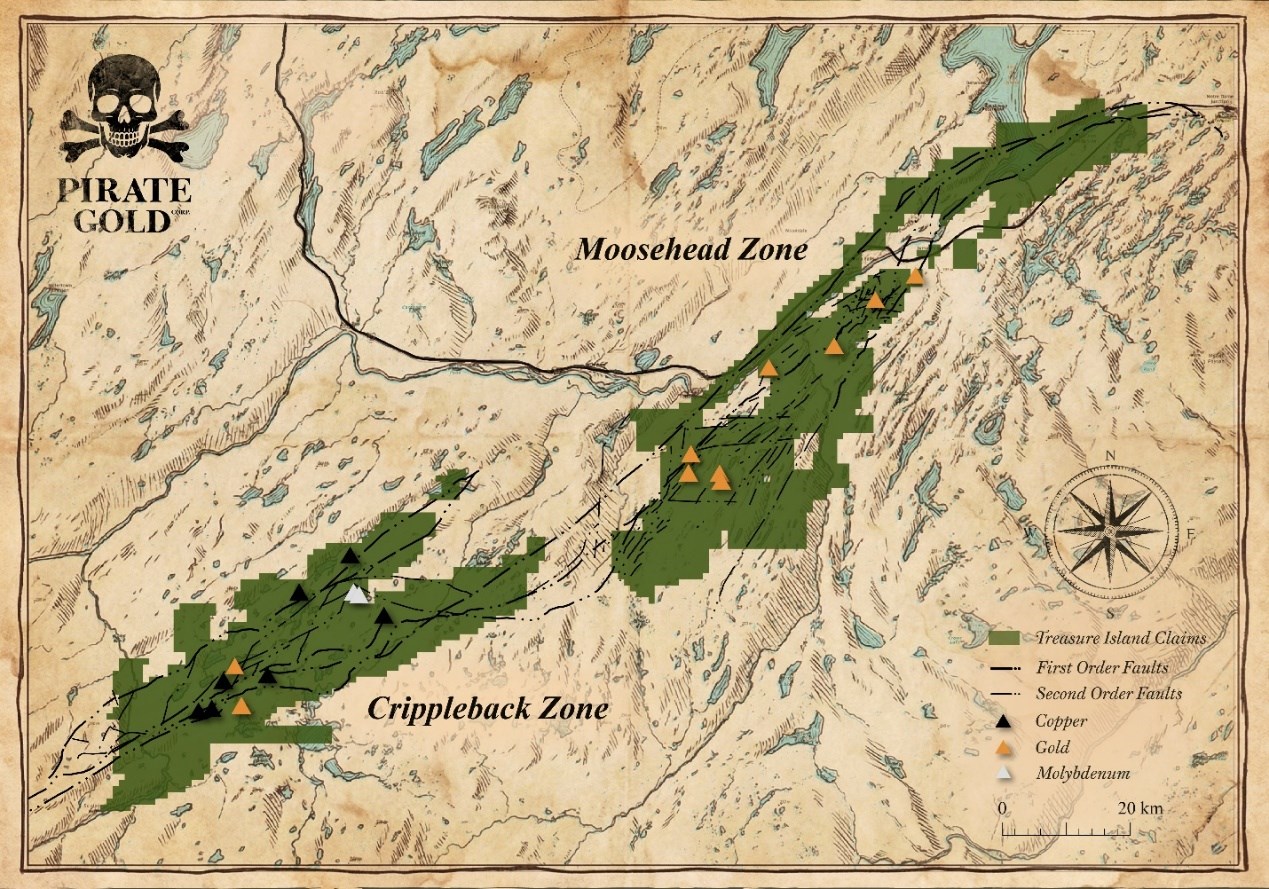St. John's, Newfoundland and Labrador--(Newsfile Corp. - April 13, 2026) - Pirate Gold Corp. (TSXV: YARR) (OTCQB: SICNF) ("Pirate Gold" or the "Company"), is pleased to announce high-grade gold results from the Moosehead Zone and the discovery of a new gold vein, the Rib Vein. The Treasure Island project covers over 90 km of strike along the Valentine Lake Fault Zone in Canada's newest gold district.