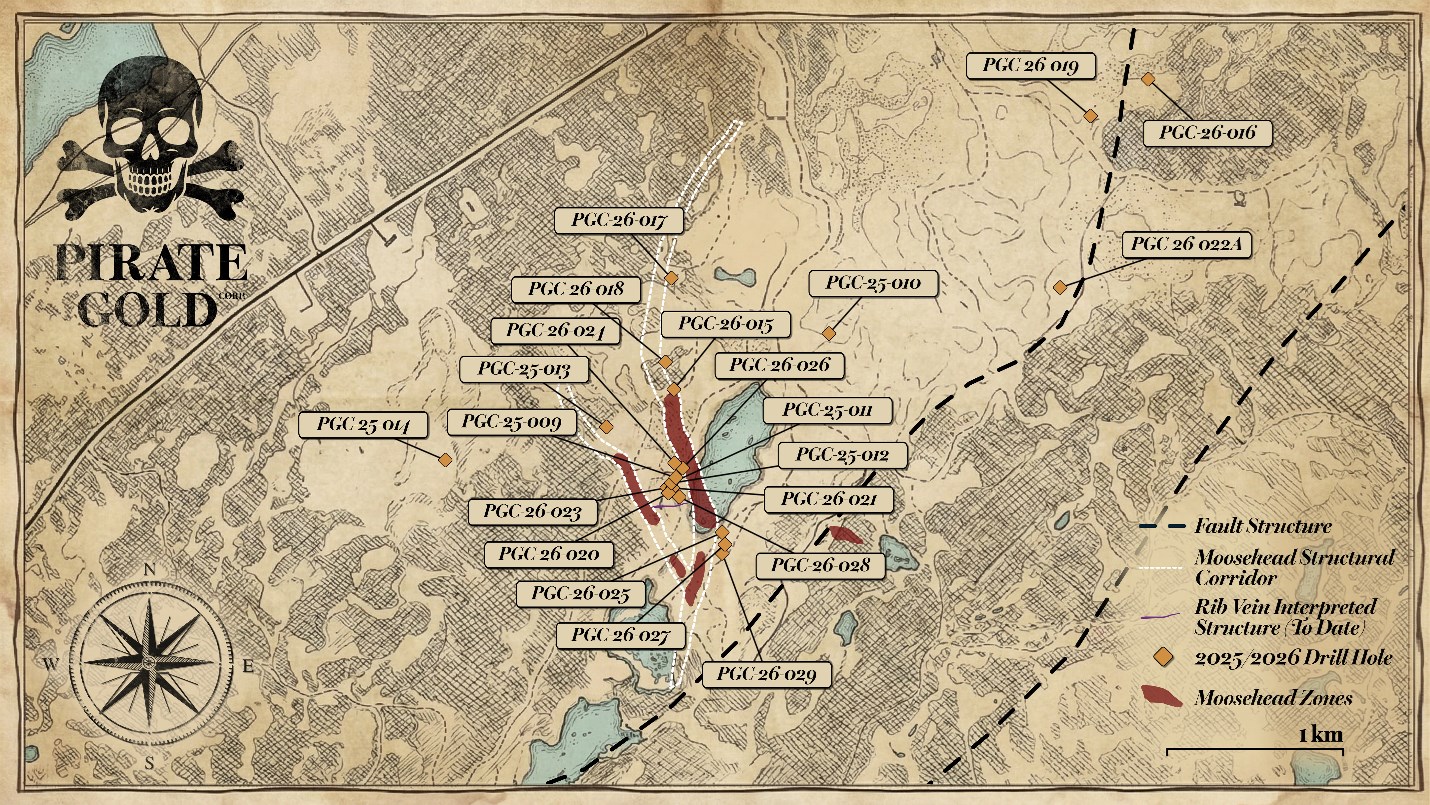 "This is exactly what you want to see in a high-grade system. The Rib Vein confirms that gold at Moosehead isn't limited to a single structure. We're now starting to unlock multiple orientations, which is how these systems scale." said Denis Laviolette, Executive Chair and CEO of Pirate Gold.
