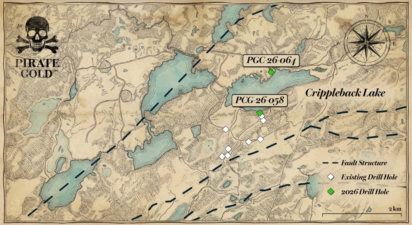 St. John's, Newfoundland and Labrador--(Newsfile Corp. - April 2, 2026) - Pirate Gold Corp. (TSXV: YARR) (OTCQB: SICNF) ("Pirate Gold" or the "Company"), is pleased to provide an update on drilling at the Crippleback Lake target zone ("Crippleback") within its district-scale Treasure Island Project in central Newfoundland, alongside the release of Episode 8 of The Pirate Gold Treasure Hunters series.