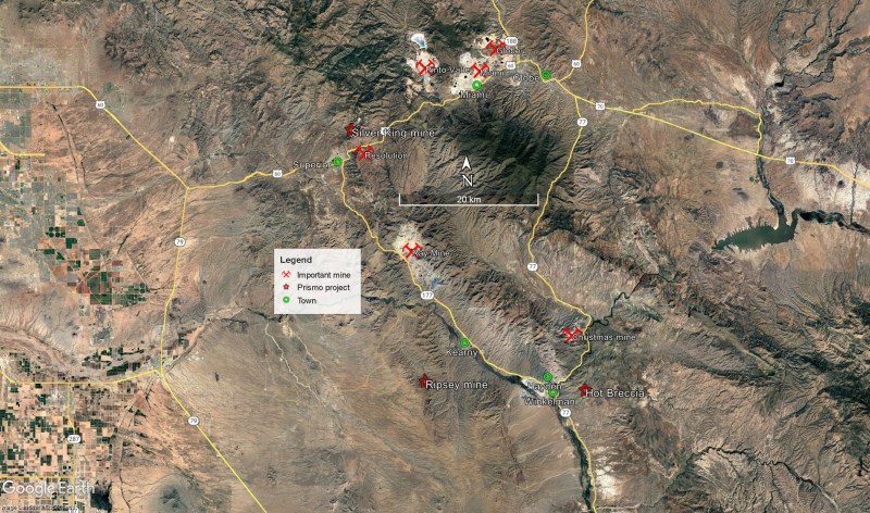 Figure 7. Location map for the Ripsey mine in the Arizona Copper Belt. The project is located about 20 km west of the Company’s Hot Breccia deposit and about 40 km southeast of the Silver King mine.